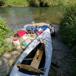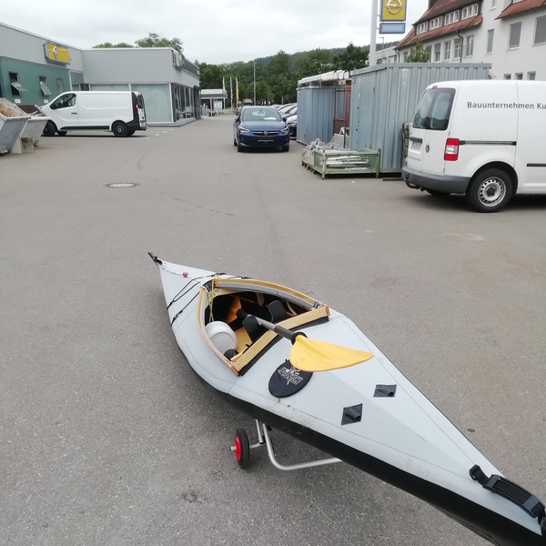 Es geht los. Mit der Kleinen Vik, einem älteren Pouch CR12 Testboot, und zwei klei-nen Packsäcken mit Schlaf-, Biwaksack und Wechselklamotten. Täglich wird so weit gepaddelt, bis die Kraft zu Ende geht, bzw. bis es dämmert. Der häufig erwähnte Pegel Horb (±50 cm) garantiert nicht, dass man im Oberen Neckar sein Faltboot nicht zuschanden fährt.