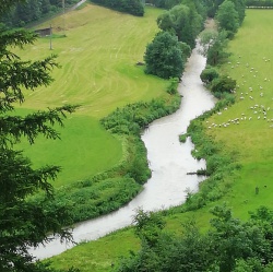 Nahe der Quellregion, das erste Industriegebiet und ein Nachtclub im Grünen.