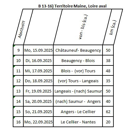 Am Sonntag, den 7.September 2025 um 15 Uhr wurde in Pouilly-sous-Charlieu ein-gebootet und am Montag den 22.9.2025, in Nantes zur Mittagzeit, das Boot kurz vor Tiefebbe an einem Ponton-Anleger aus dem Wasser gezogen.
