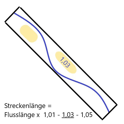 niedrigem Wasserstand eine 1,03fache Streckenlänge eine Näherung der