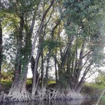 Bei der Zusammensetzung der Auenwälder wird häufg die Schwarz-Pappel erwähnt. Diese findet sich in Reinform, durch das Einbringen (Wasserbau, Forst) fremdlän-discher Pappelarten und den daraus entstehenden Bastarden, zunehmend seltener. Ohnehin ist ihre Bestimmung schwierig. Bisweilen wurde in den ufernahen Auwald-streifen ein 30%iger Anteil des amerikanischen Eschen-Ahorns ausgemacht.